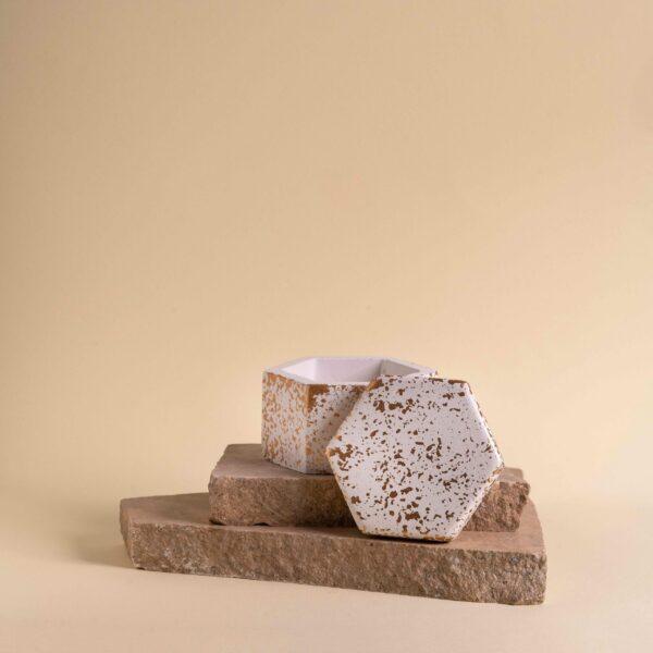 Κεραμική μπιζουτιέρα λευκή με χρυσό