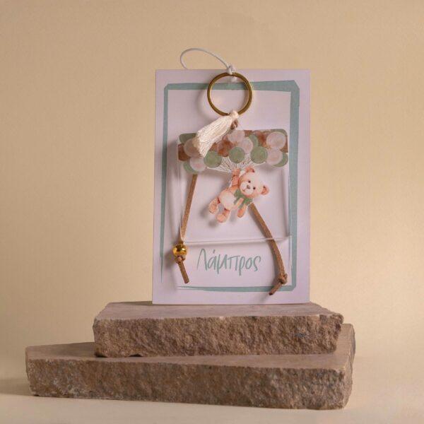 Μπομπονιέρα μπρελόκ με θέμα αρκουδακι με μπαλόνια