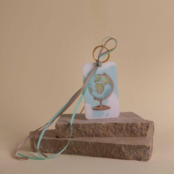 Μπομπονιέρα μπρελόκ με θέμα την υδρόγειο.