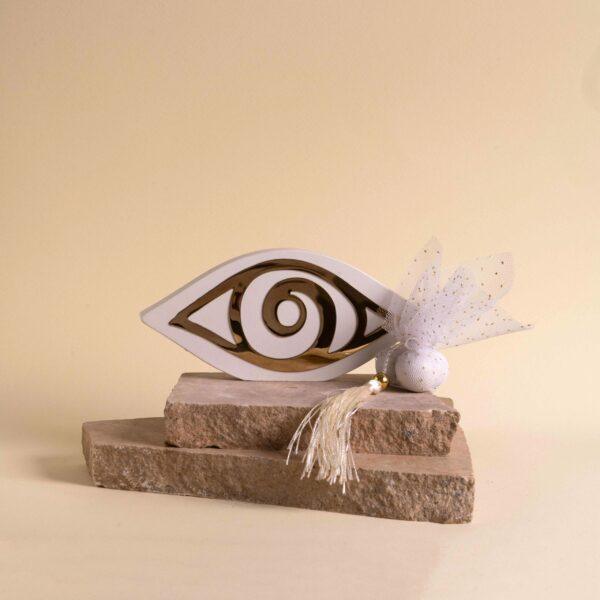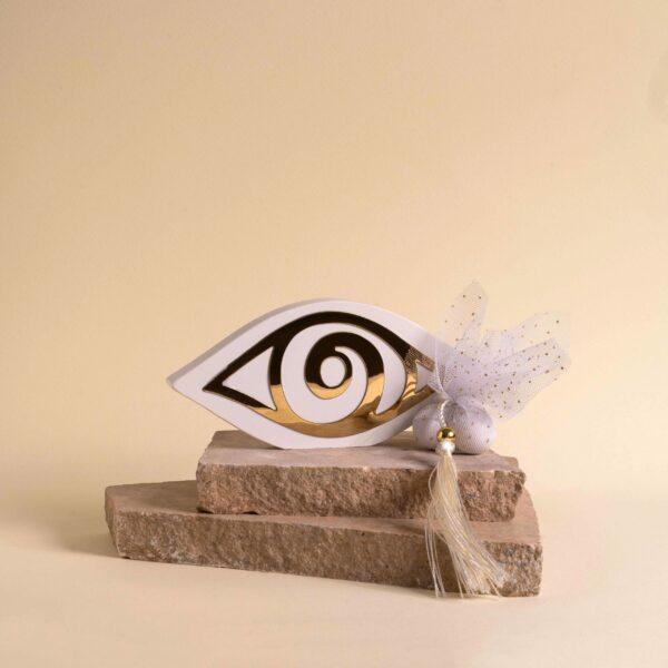 Μπομπονιέρα πορσελάνινη λευκό μάτι με χρυσές λεπτομέρειες